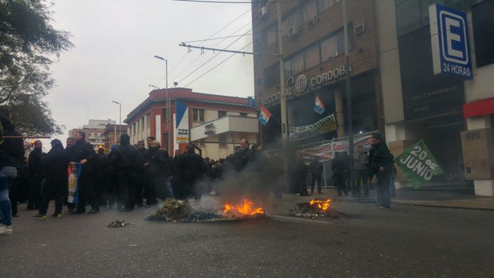 Los trabajadores también reclaman que finalice la intervención a la delegación local del gremio. Realizan un piquete en avenida Vélez Sársfield frente a la sede de UTA, lo que genera caos de tránsito en el sector.