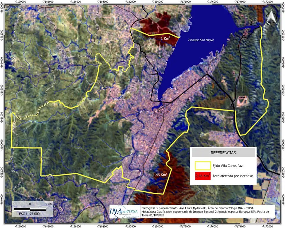 Tras los incendios que comenzaron el pasado 21 de septiembre en los barrios del sur de Villa Carlos Paz y siguieron la semana pasada en el límite norte de la ciudad, la Dirección de Ambiente de la Municipalidad realizó estudios en los que determinó la superficie afectada por el fuego.