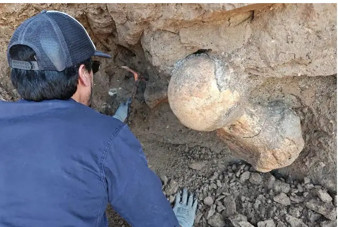Una pareja de turistas que recorría la zona sur de los acantilados de Santa Clara del Mar (Costa argentina), protagonizó un descubrimiento extraordinario al toparse con restos fósiles de un Megatherium, el perezoso gigante que dominó la llanura pampeana en tiempos prehistóricos.