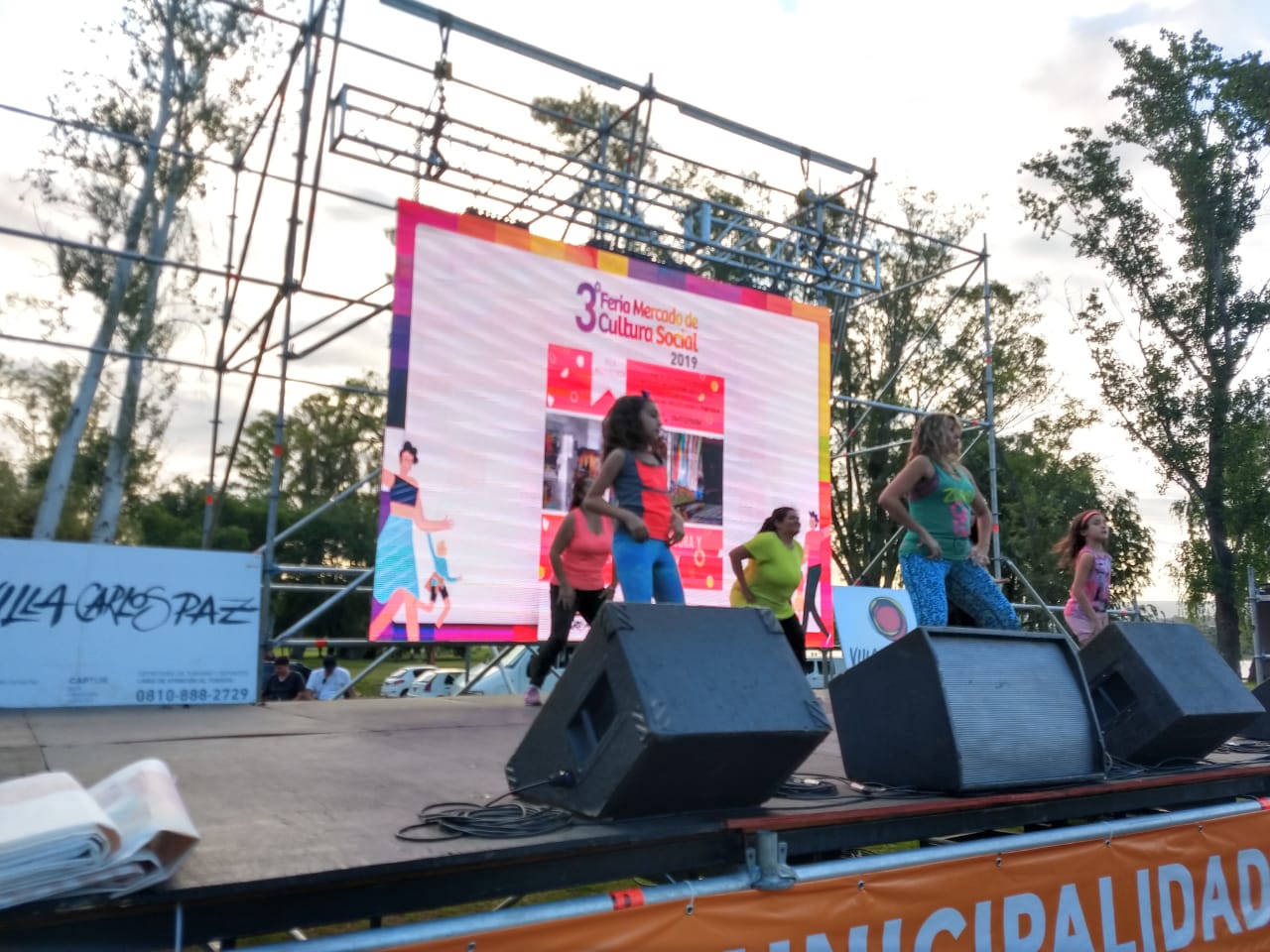 El evento, organizado por el Municipio, cuanta con varios stands para la exhibición de los productos y trabajos; y, además, hay un gran escenario por el que van pasando los alumnos de los distintos talleres y cursos que se dictan en los centros vecinales.