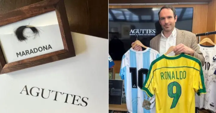 Un mechón de cabello de Diego Armando Maradona y la camiseta de Ronaldo en la final del mundial del 98, en la que Brasil perdió ante Francia, se quedaron sin comprador en una subasta realizada en París, informaron a EFE fuentes de la casa Aguttes, encargada de la venta.