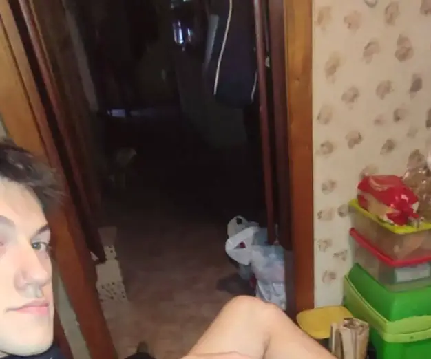 Tal como se ve en la selfie, el joven está sentado con su gato “Sparrow” en el regazo pero al fondo del pasillo, y en medio de la oscuridad, se ve la figura oscura de una persona.