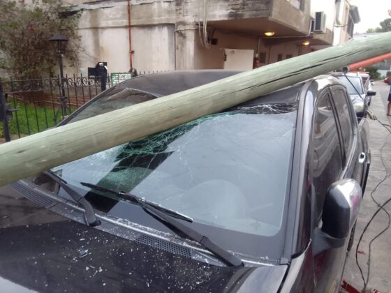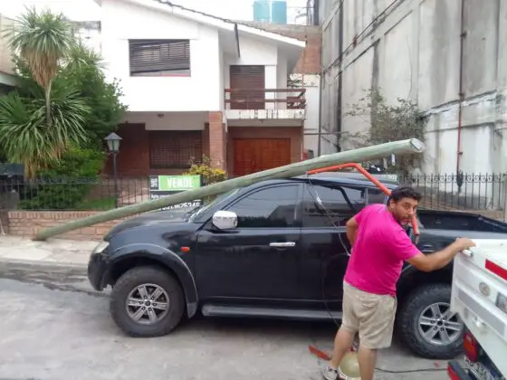 En la tarde de este viernes, un poste de luz en mal estado cayó sobre una camioneta en el pasaje Sol de Mayo, en el centro de Carlos Paz. Afortunadamente no estaba ocupada al momento de sufrir los destrozos.