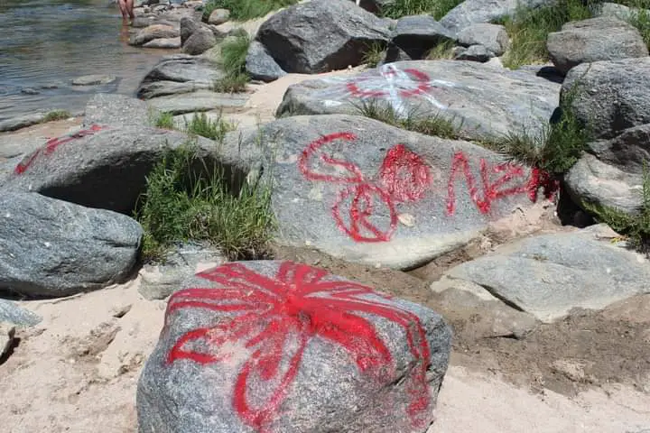 El día de ayer, pasadas las siete de la tarde, dos personas adultas realizaban grafitis y pintadas en varias piedras sobre el río San Antonio, en la zona de Tala Huasi. Tras el hecho, la Policía efectuó la detención de las mismas, quienes son oriundas de la ciudad de Córdoba.
