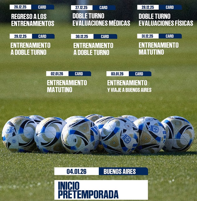 Desde mañana sábado 27 hasta el 31 de diciembre, Talleres entrenará en doble turno cada día, para luego regresar el 2 de enero a las prácticas y, un día después, entrenar y partir a Buenos Aires donde se espera se sumen los refuerzos y encaren una serie de encuentros amistosos.