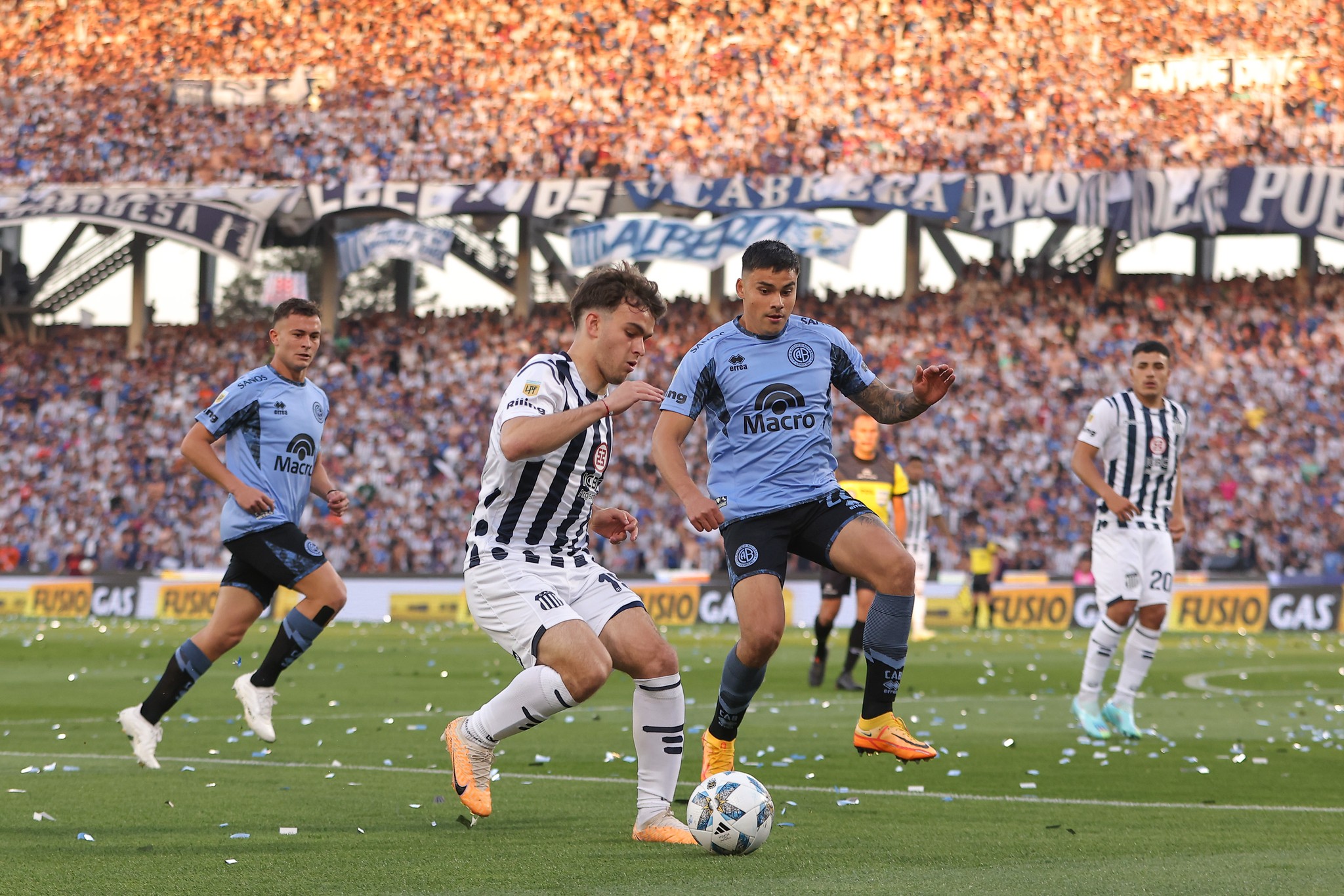 Los que sí tuvieron su fiesta fueron los hinchas, que en el estadio fueron todos de Talleres y que protagonizaron un recibimiento histórico que busca ser homologado como récord Guinness, ya que flamearon 50.000 banderas blancas y azules entre las tribunas.