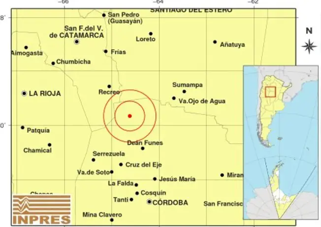 Desde el Instituto Nacional de Prevención Sísmica (INPRES), destacaron que el temblor fue a las 8:11 hs. de este miércoles, con epicentro a 71 kilómetros al norte de la ciudad de Deán Funes y una profundidad de 16 kilómetros.