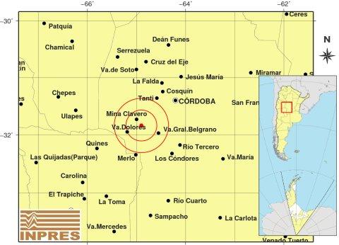 Se registró a las 19.52 de este sábado en las coordenadas 31.835 de latitud sur y 64.901 de longitud oeste.