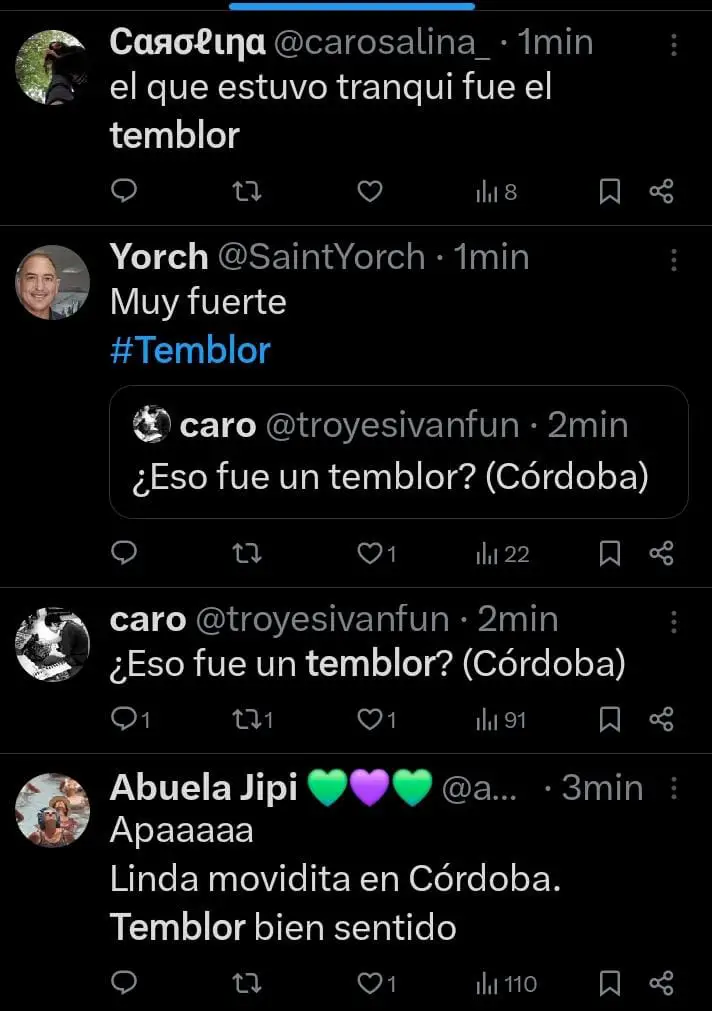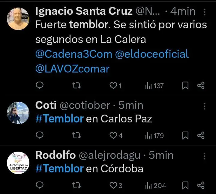 Un fuerte temblor se sintió en la tarde de este domingo a las 18:06. Vecinos de Carlos Paz, San Antonio, Bialet Massé, La Calera y la ciudad de Córdoba reportaron haber sentido el fenómeno.