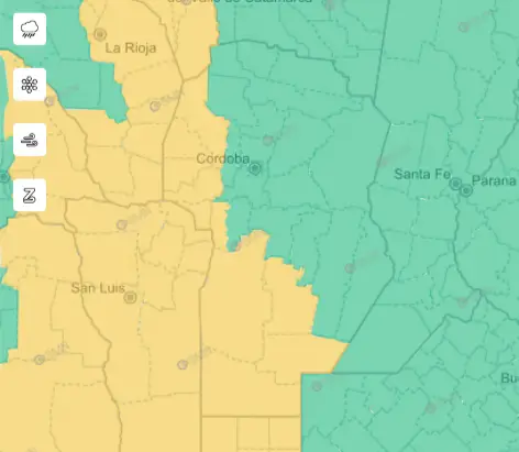 Particularmente en Córdoba las áreas afectadas serán el sur y el oeste por la tarde y la noche de este viernes.