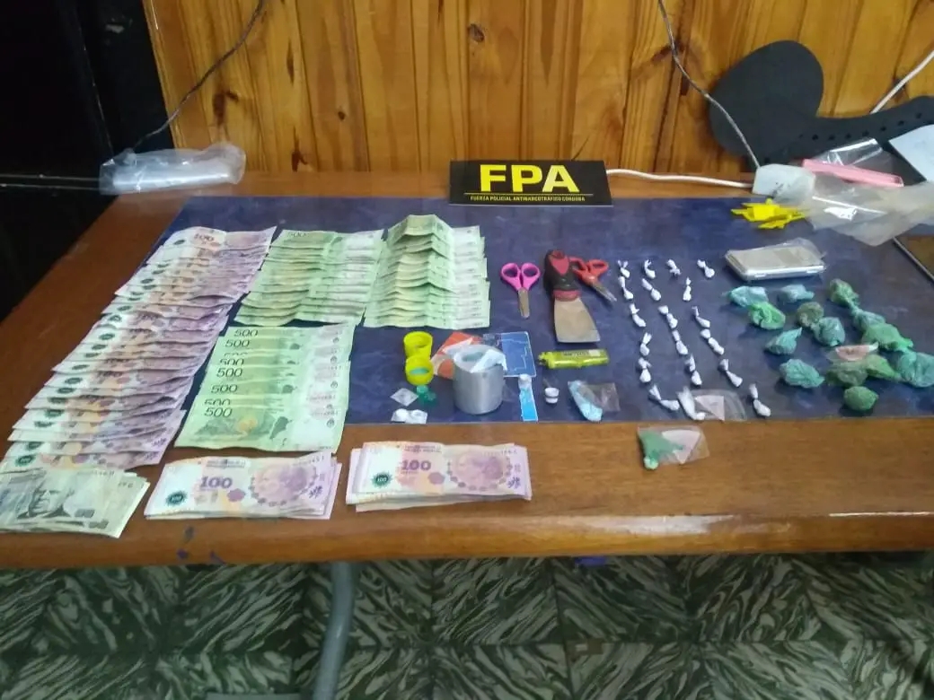 En la vivienda allanada, efectivos de la FPA detuvieron a los investigados e incautaron varias dosis de cocaína y marihuana, además de 21.790 pesos en efectivo, entre otros elementos presuntamente relacionados a la actividad ilegal.