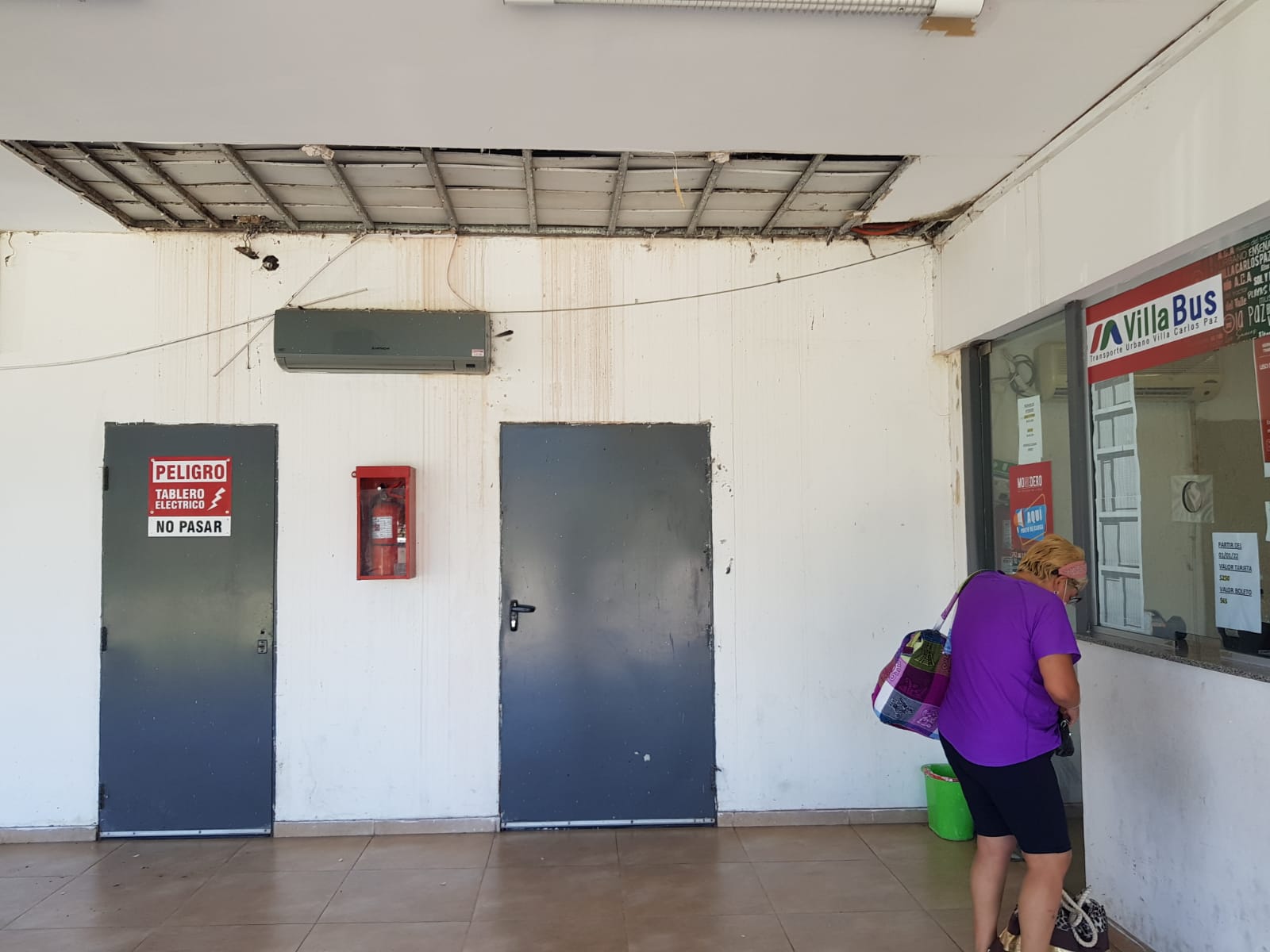 Vecinos y turistas señalaron que el cielorraso de una parte del techo de la sala de espera presenta roturas, por lo que el agua de la lluvia comenzó a escurrir por allí y generó inconvenientes, ya que el sector afectado está en la zona de boleterías.