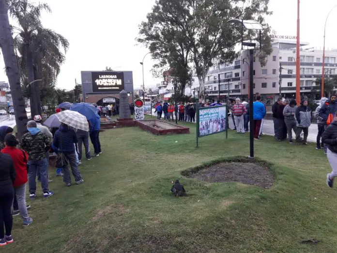 Los feligreses esperan, semimojados o semisecos (como el vaso de agua…viste?) las entradas gratis que la Secretaría de Turismo les entrega para el superprime nocturno, urbano y costaneril, del finde.