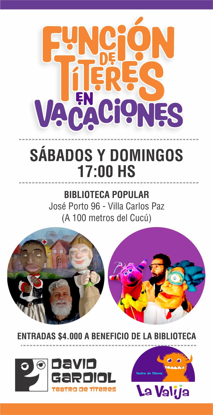 En estas vacaciones de invierno, todos los sábados y domingos, durante el mes de julio, se llevan a cabo funciones de títeres a beneficio de la Biblioteca Popular H Porto (José Porto 96) de Villa Carlos Paz.