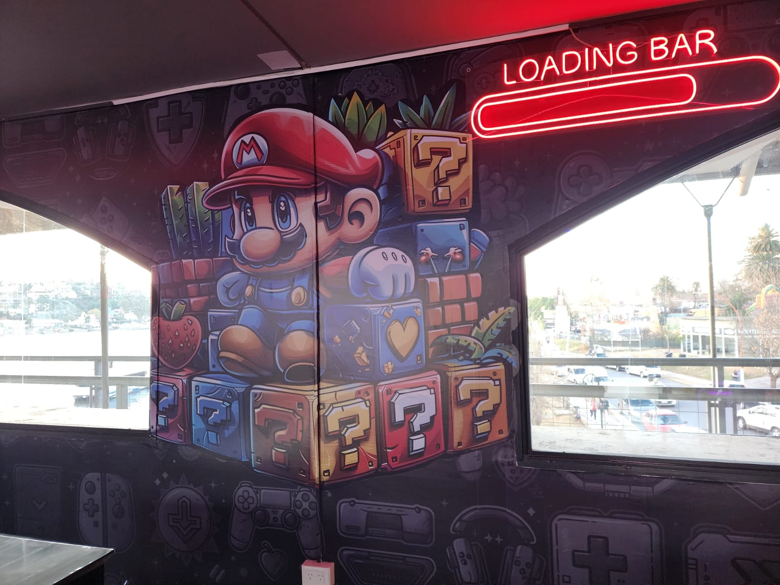 La ambientación del bar es un viaje directo al corazón de los videojuegos clásicos y contemporáneos. Desde los muebles hasta los murales, todo está diseñado para homenajear a ícono del mundo gamer. Se trata de una experiencia inmersiva tanto para los fanáticos de los juegos como para quienes buscan una postal distinta de la ciudad.