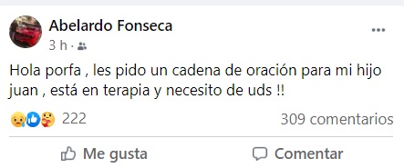 La fotógrafa Yanina Aguirre, señaló en las redes: “Él es Juan, el ser más hermoso que conocí, hoy nos necesita ya que está internado grave en terapia intensiva, por favor los que crean (y los que no también) eleven una oración al cielo por su pronta recuperación y le de fortaleza a esos padres que están sufriendo mucho. Fuerza Juan! Sos un guerrero!! Abelardo Fonseca Liliana Andrea Martinez los quiero con el alma, todo va a estar bien!! Estamos todos rezando!”.