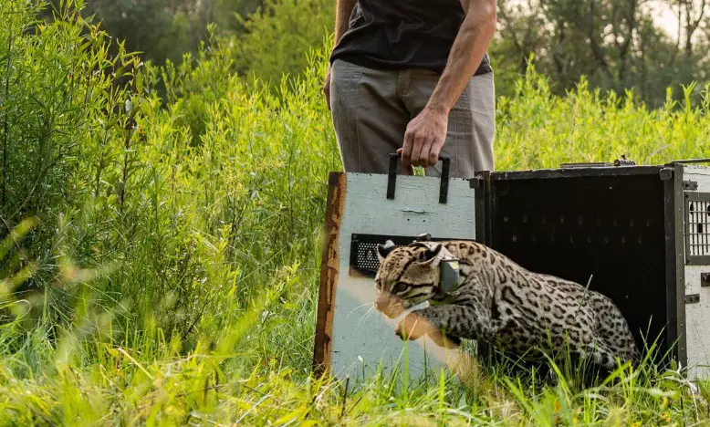 Una pareja de ocelotes fue reintroducida en el Parque Iberá en la provincia de Corrientes en un nuevo proyecto de la Fundación Rewilding para la reintroducción de esta especie, “el tercer mayor felino de América, que se extinguió en la zona durante el siglo XX por la caza y destrucción de su hábitat”, informó la organización conservacionista.