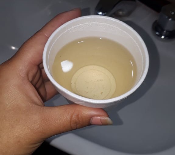 “El primer día no tuvimos desayuno y eran las 14 y no teníamos novedades del almuerzo, recién a las 16 nos dieron dos pebetes con una botella de agua. Y a las dos horas un té, un bollo de pan, una naranja, un alfajor Tatín y un turrón, como merienda. Hoy nos dieron el té y el agua era marrón, ellos consumirían eso, no creo.”, dijo Florencia.