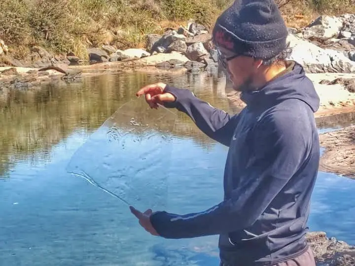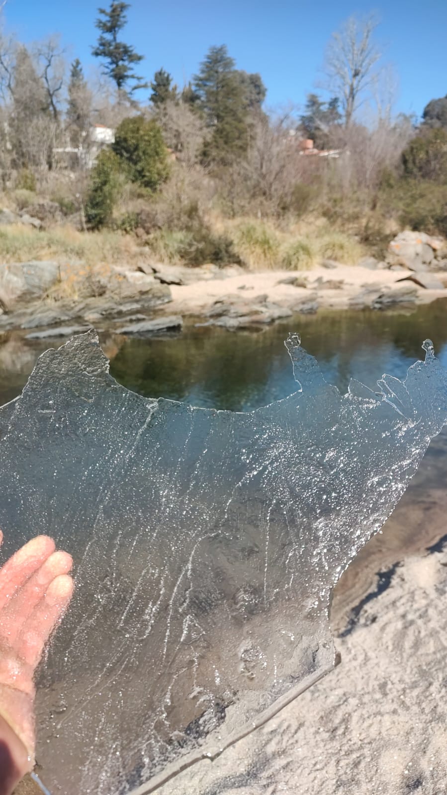Con la sucesión de heladas y temperaturas bajo cero los ríos cordobeses amanecen congelados y permanecen así por varias horas.