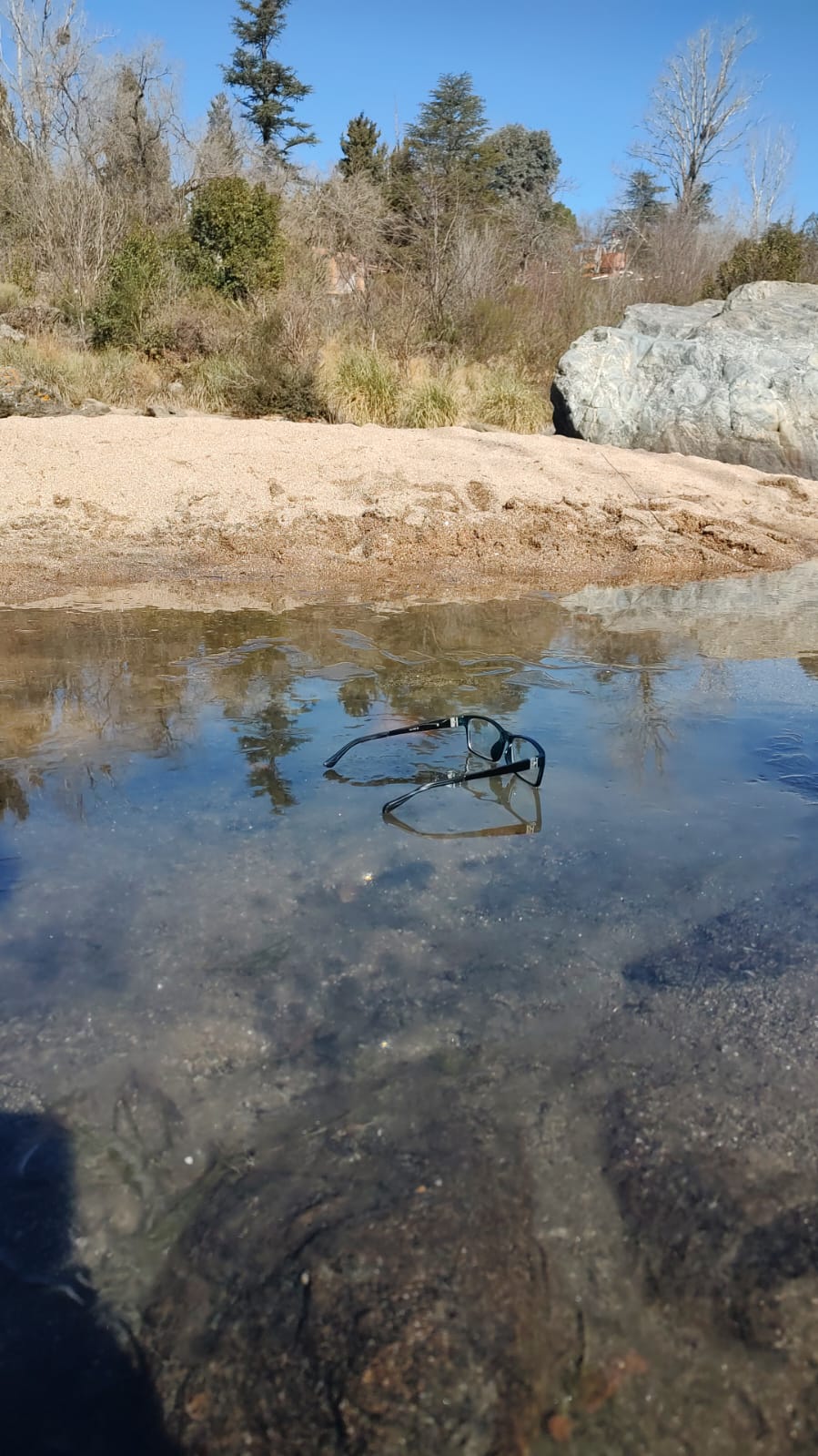 Este sábado al mediodía, el Río San Antonio en la zona del puente de Mayú Sumaj, aún permanecía con hielo en su superficie.