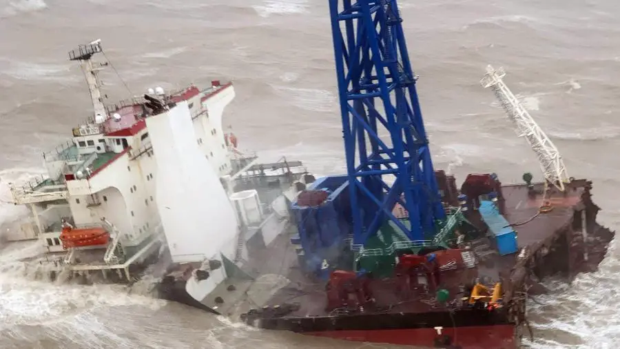 El buque de ingeniería se encontraba a unos 250 kilómetros al suroeste de Hong Kong cuando fue alcanzado por la tormenta Chaba.