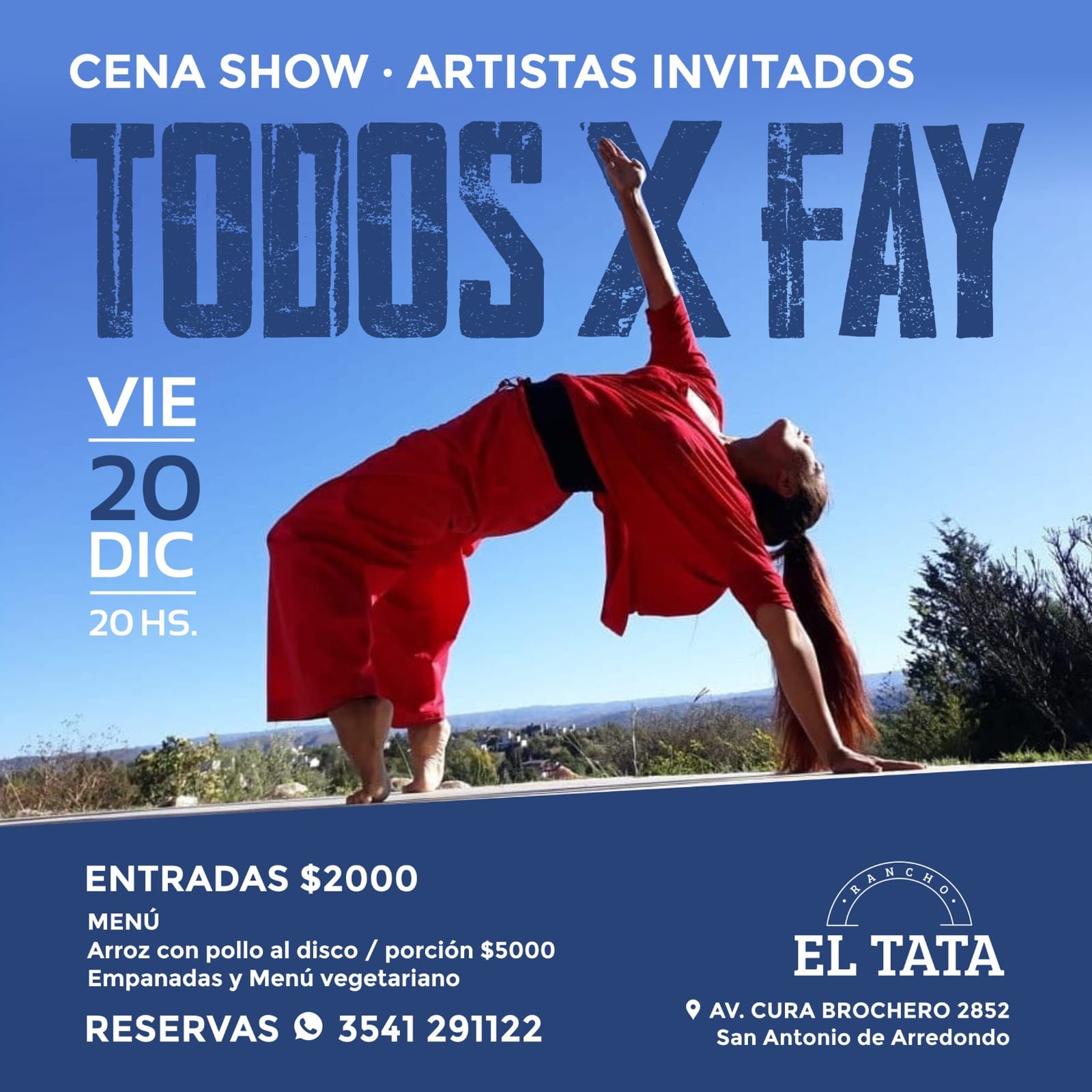 Será una cena show que se realizará el próximo 20 de diciembre en el rancho El Tata, en San Antonio de Arredondo.