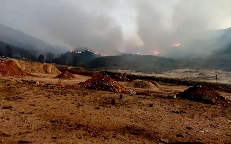 El incendio que se inició en horas de la noche del domingo en esa zona de las Sierras Grandes, a la altura de Berrotarán.