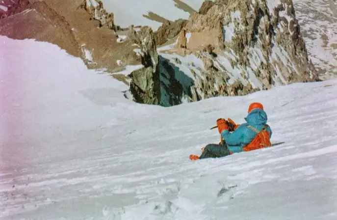 Dos porteros, que se preparaban para una próxima expedición, habían estado asegurando cuerdas en el delgado y árido aire de un día claro de febrero. Era verano en América del Sur. La cámara brilló al sol, dejándose notar.