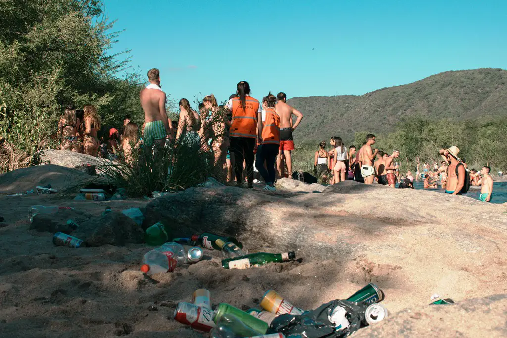 Una mujer que estuvo en el lugar y fue testigo de la llegada de los bañistas, señaló que «nos tuvimos que mover porque cada vez se nos venían más encima y no respetaban el distanciamiento ni uso de barbijos».