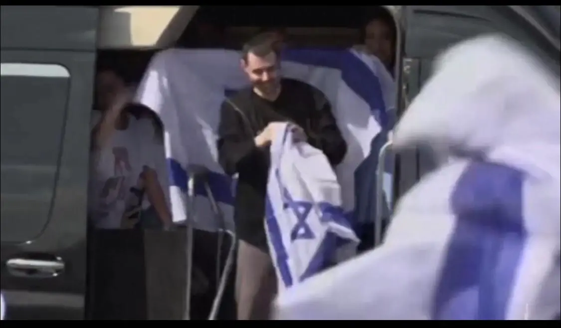 En medio de escombros, en Gaza, hizo el traspaso a vehículos de la Cruz Roja Internacional, que cumplió con el traslado acordado.
