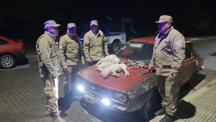 Lo más curioso sucedió luego del control del vehículo ya que en su interior habían tres lechones faenados y un ternero en la parte trasera.