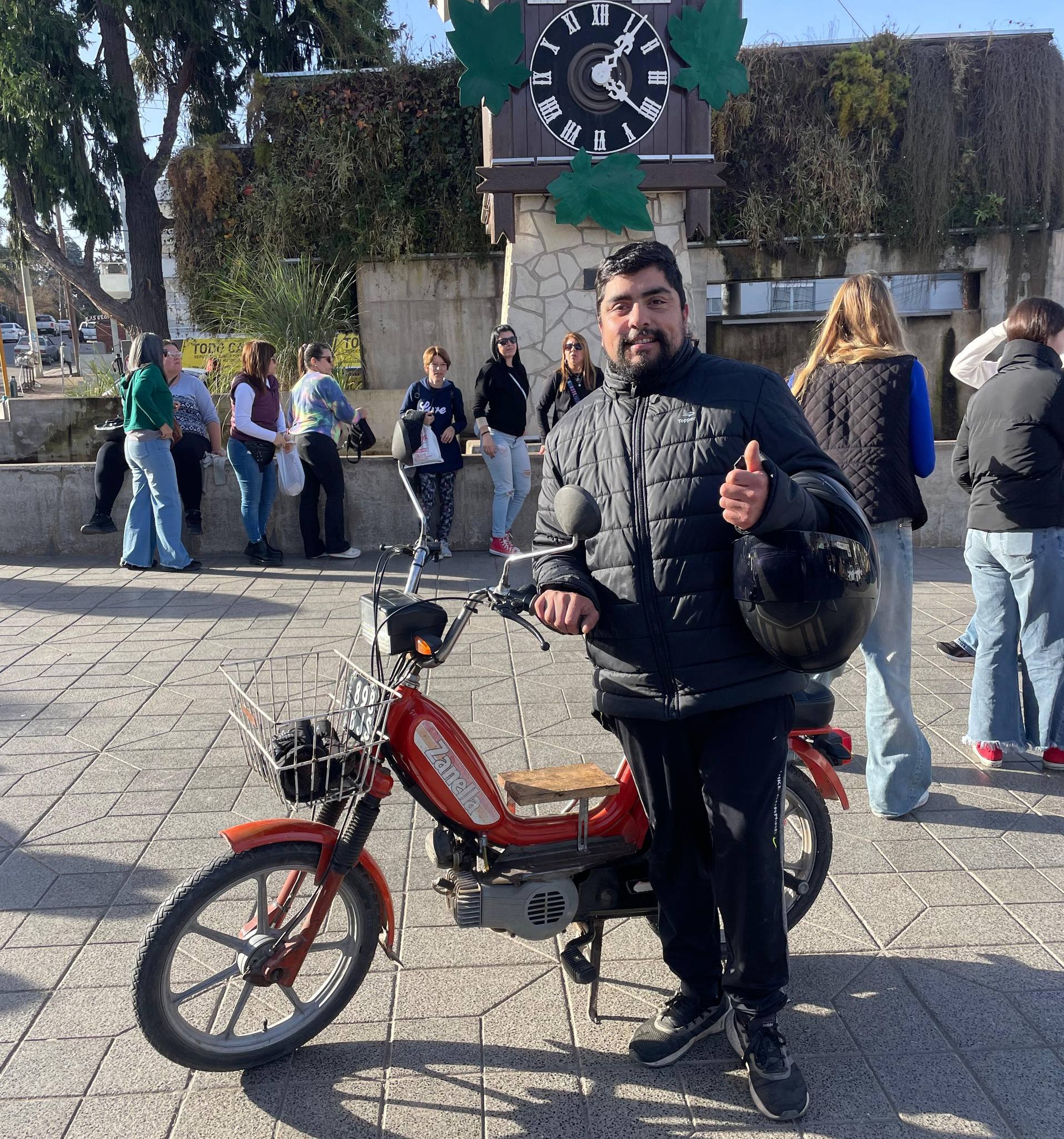 No hubo frío ni viento que lo frene y Pablo Toloza, un vecino de la localidad de Morteros, recorrió 358 kilómetros en su Zanella 50 cc para llegar a Carlos Paz y tomarse la tradicional foto en el Reloj Cu Cú. En la imagen no podía faltar la fiel motocicleta.