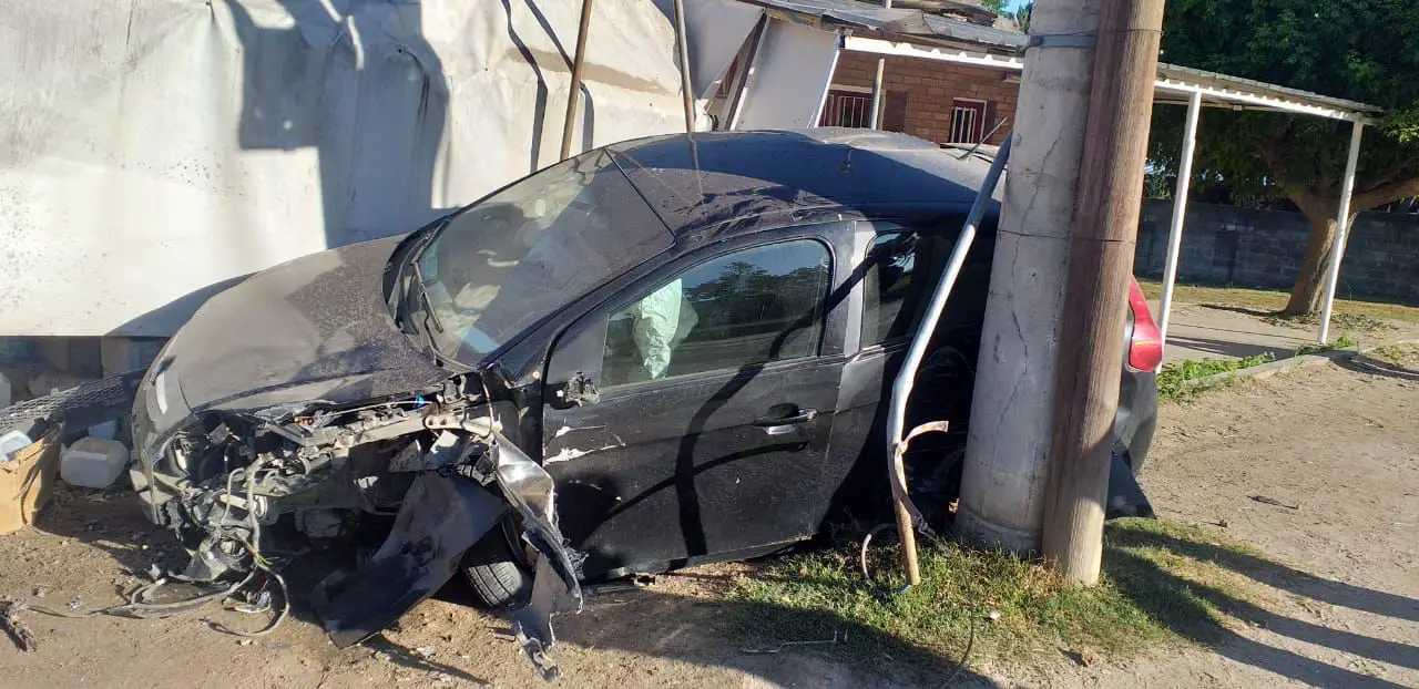 Minutos después de las 8 horas, por motivos que se investigan, el conductor perdió el control del rodado y no solo impactó contra dos columnas -de alumbrado y tendido eléctrico-, sino que además colisionó con la parte frontal de un comercio.