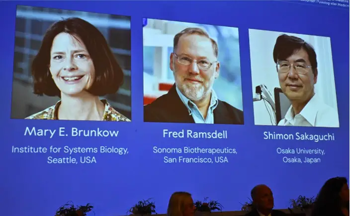 Mary E. Brunkow, Fred Ramsdell y Shimon Sakaguchi ganaron el Nobel de Medicina el lunes por sus descubrimientos sobre la tolerancia inmune periférica.