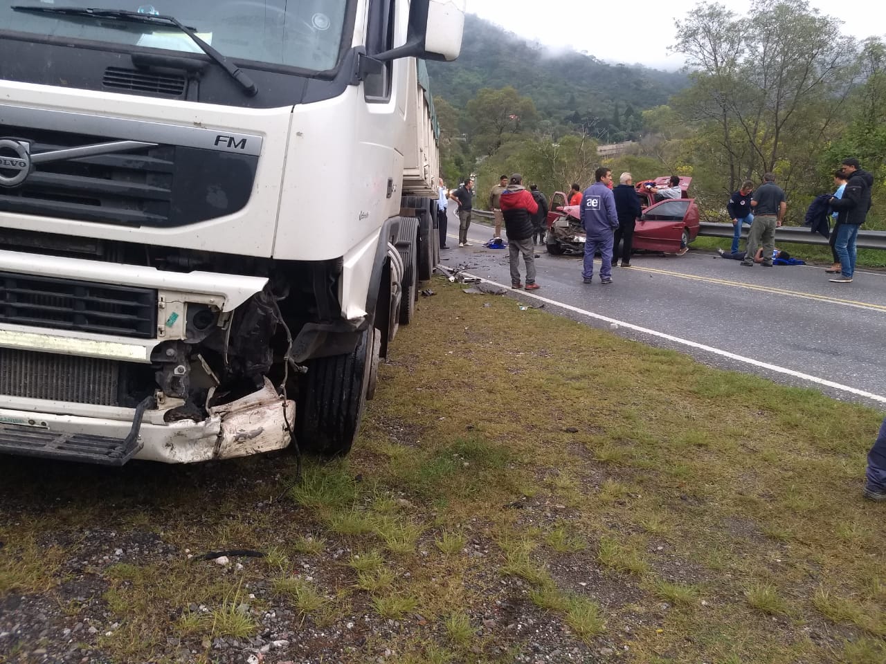 A la altura del kilómetro 14, un camión y un auto impactaron de frente, dejando como saldo tres personas con lesiones de diferente consideración, quienes fueron retirados del habitáculo del coche mediante la intervención de personal de Bomberos. Todos los heridos fueron derivados a un centro de salud para una mejor atención médica.