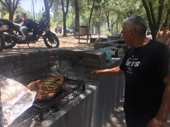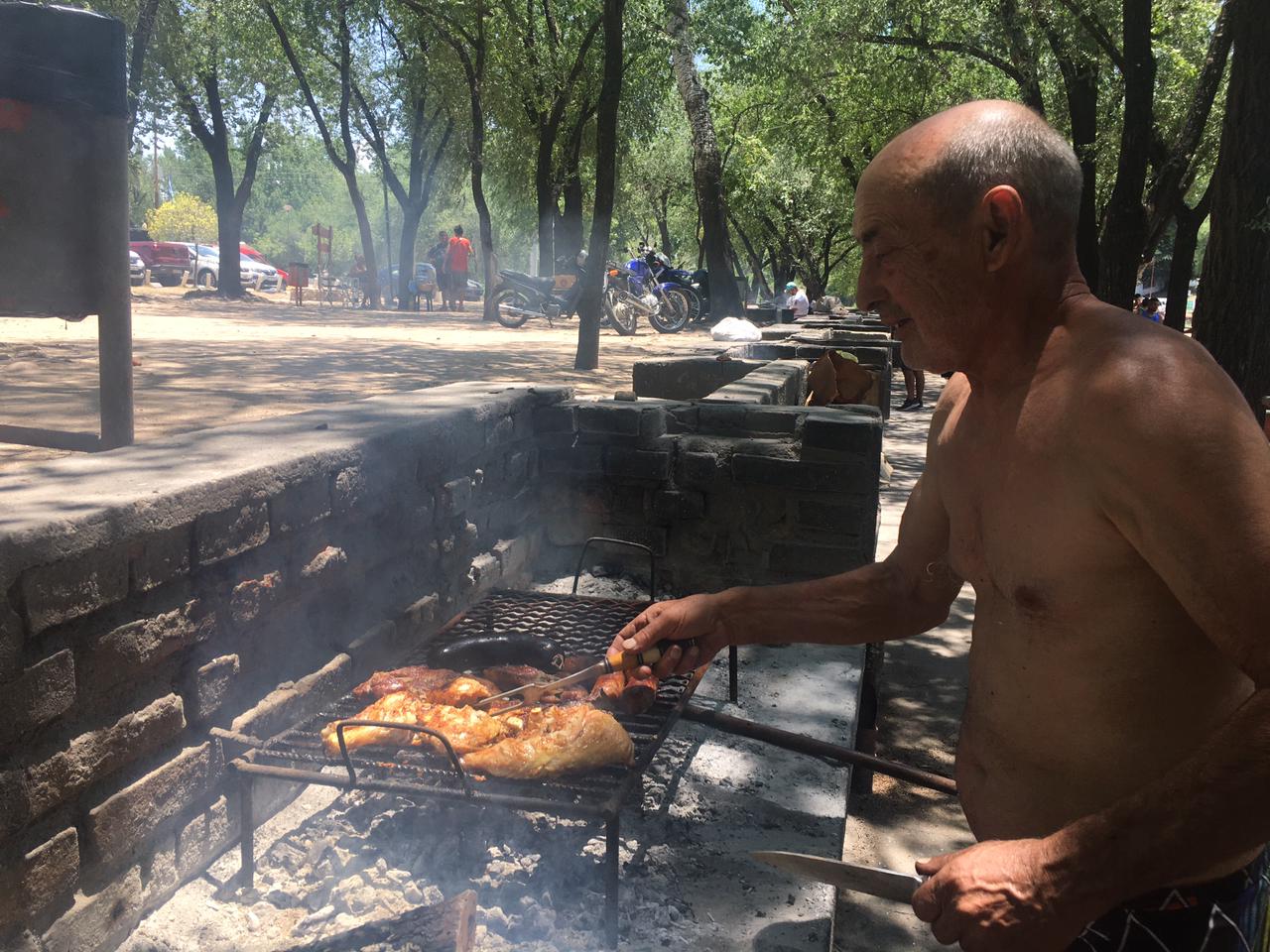 Pese a la escasa agua que mantiene el río San Antonio debido a la sequía, los turistas llegaron a Playas de Oro para bañarse y, de paso, comenzar su estadía con un buen asado a la parrilla.