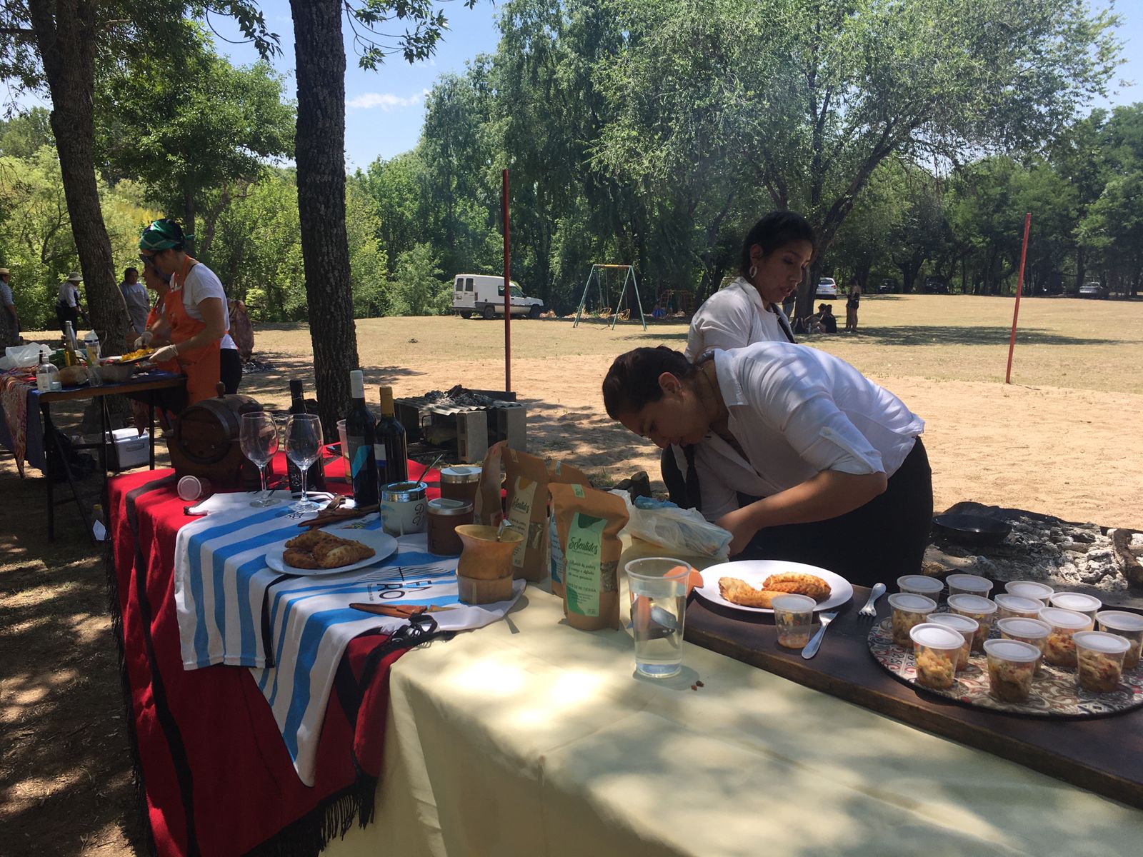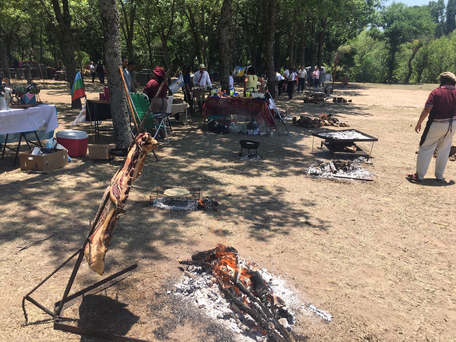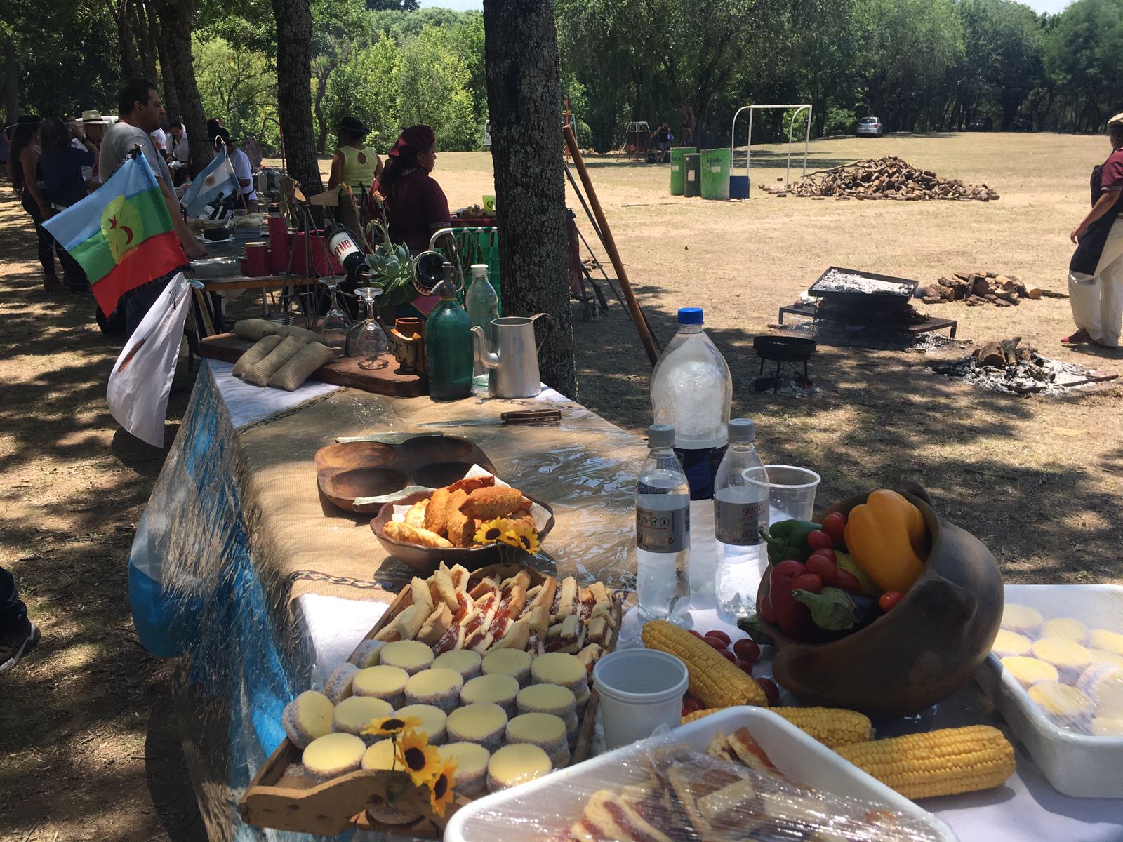 Mientras tanto, como el fuego ya estaba en marcha y “al asado hay que esperarlo” (a entender de las que saben), fueron cocinando empanadas fritas y a la parrilla, tortas fritas y demás platos que sirven para acompañar la carne.