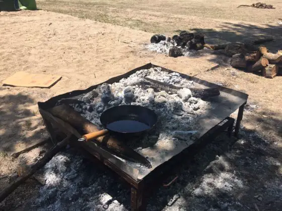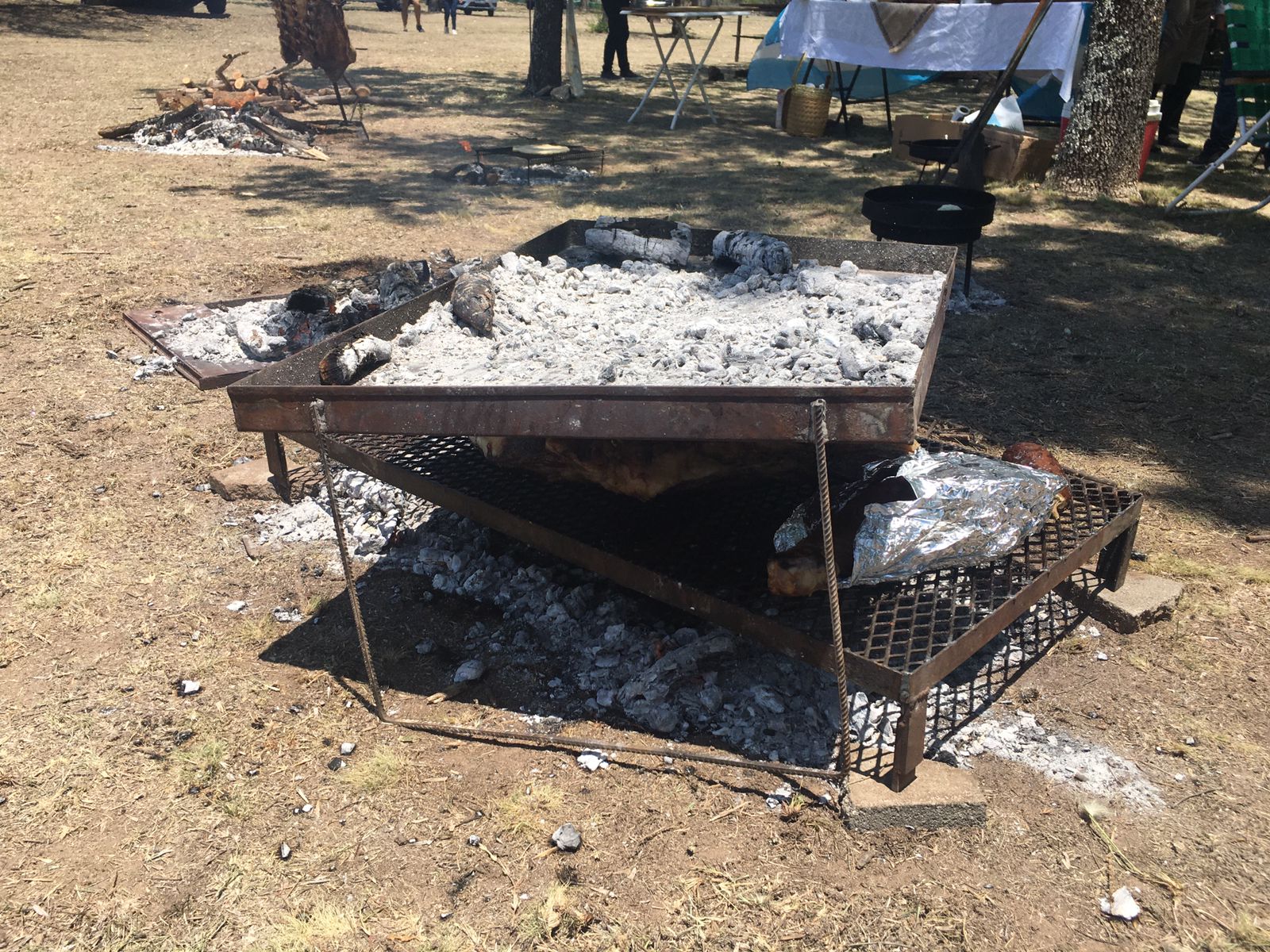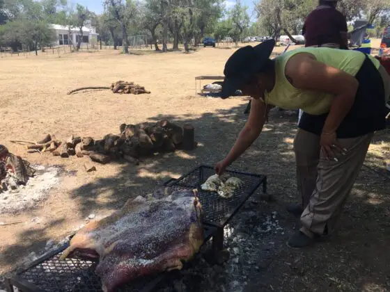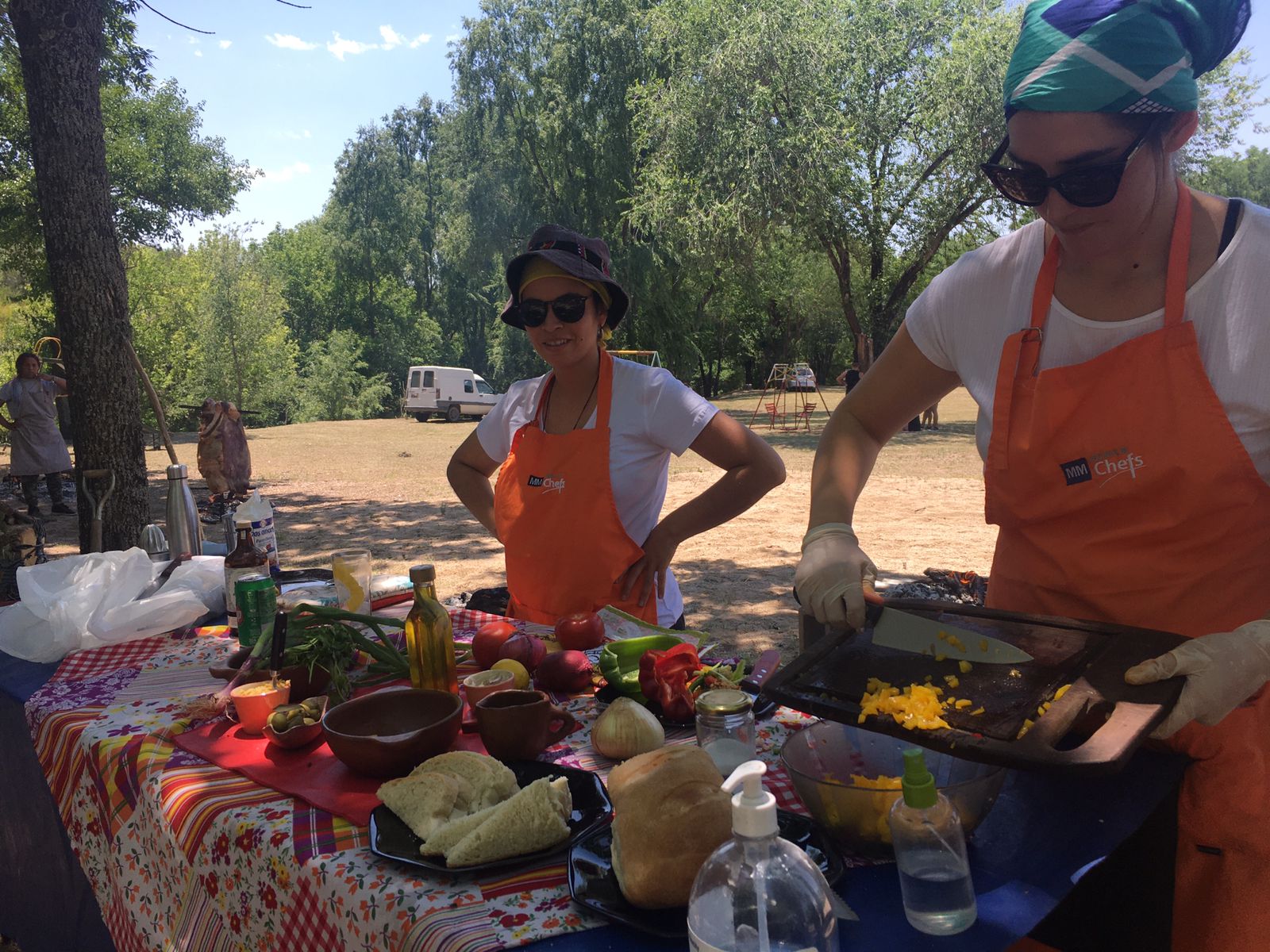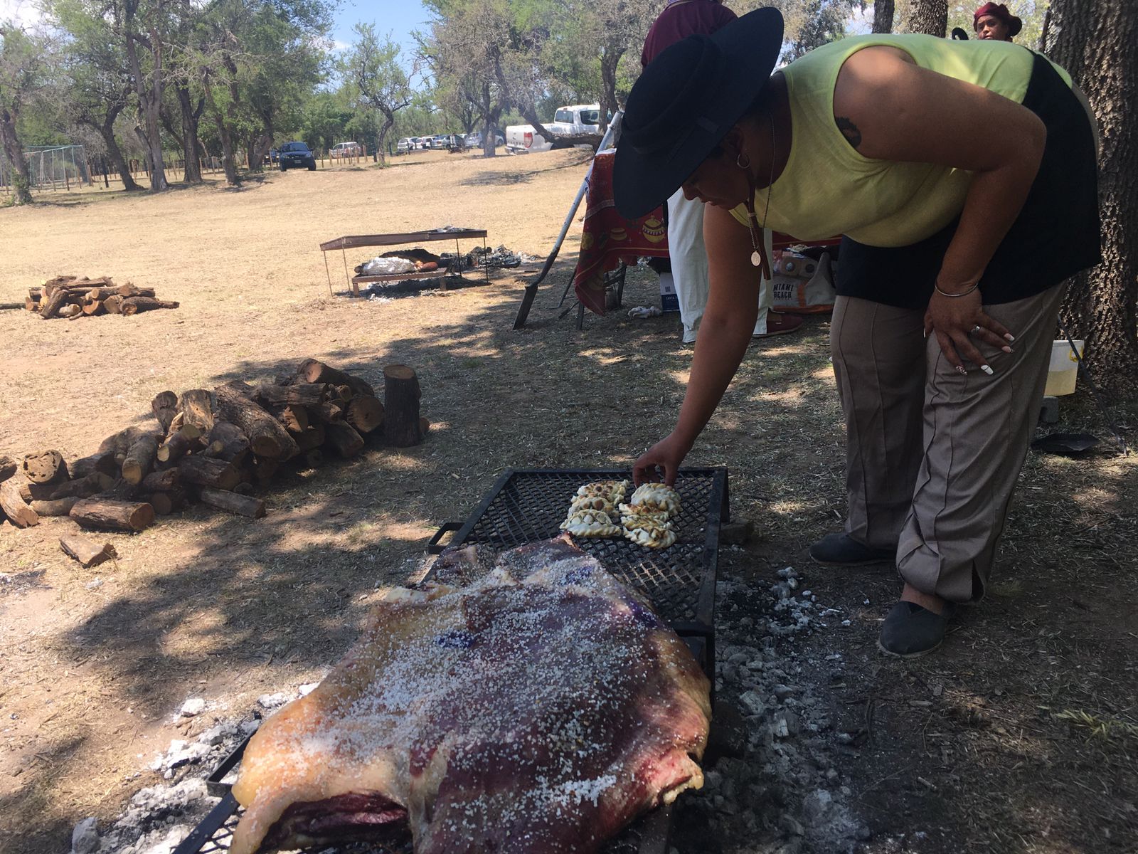 Mientras tanto, como el fuego ya estaba en marcha y “al asado hay que esperarlo” (a entender de las que saben), fueron cocinando empanadas fritas y a la parrilla, tortas fritas y demás platos que sirven para acompañar la carne.