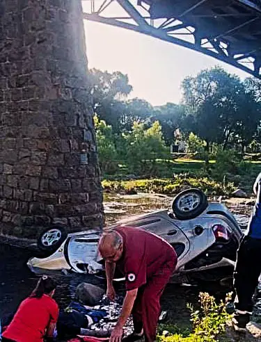 Alrededor de las 07:30 horas, se produjo un grave accidente vial en el Puente Carretero de Cosquín, cuando un automóvil Renault Mégane perdió el control, se salió de la calzada y cayó al vacío, quedando debajo de la estructura del puente.