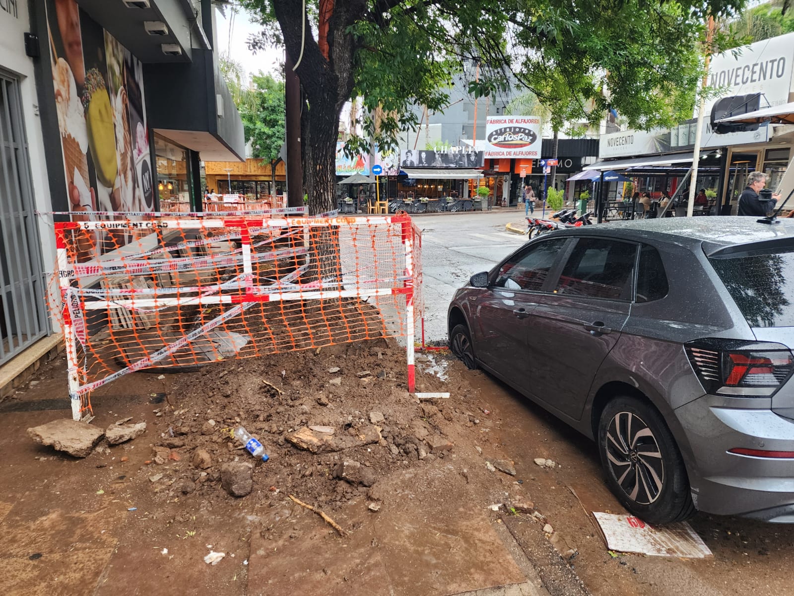 Ocurrió esta mañana en la esquina de Juan B. Justo y General Paz, en una zona donde se realizan trabajos sobre la calzada. Un Volkswagen gris quedó con sus ruedas delanteras hundidas en una zanja abierta en el pavimento, lo que generó sorpresa entre los vecinos y peatones que circulaban por el sector.