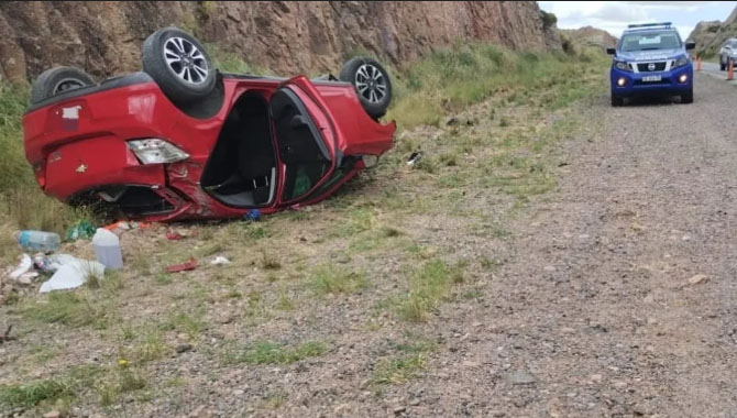 Un vehículo Chevrolet Onix, que se desplazaba en dirección de Córdoba a Mina Clavero, protagonizó un despiste que culminó con un impacto contra el cordón montañoso y un vuelco.