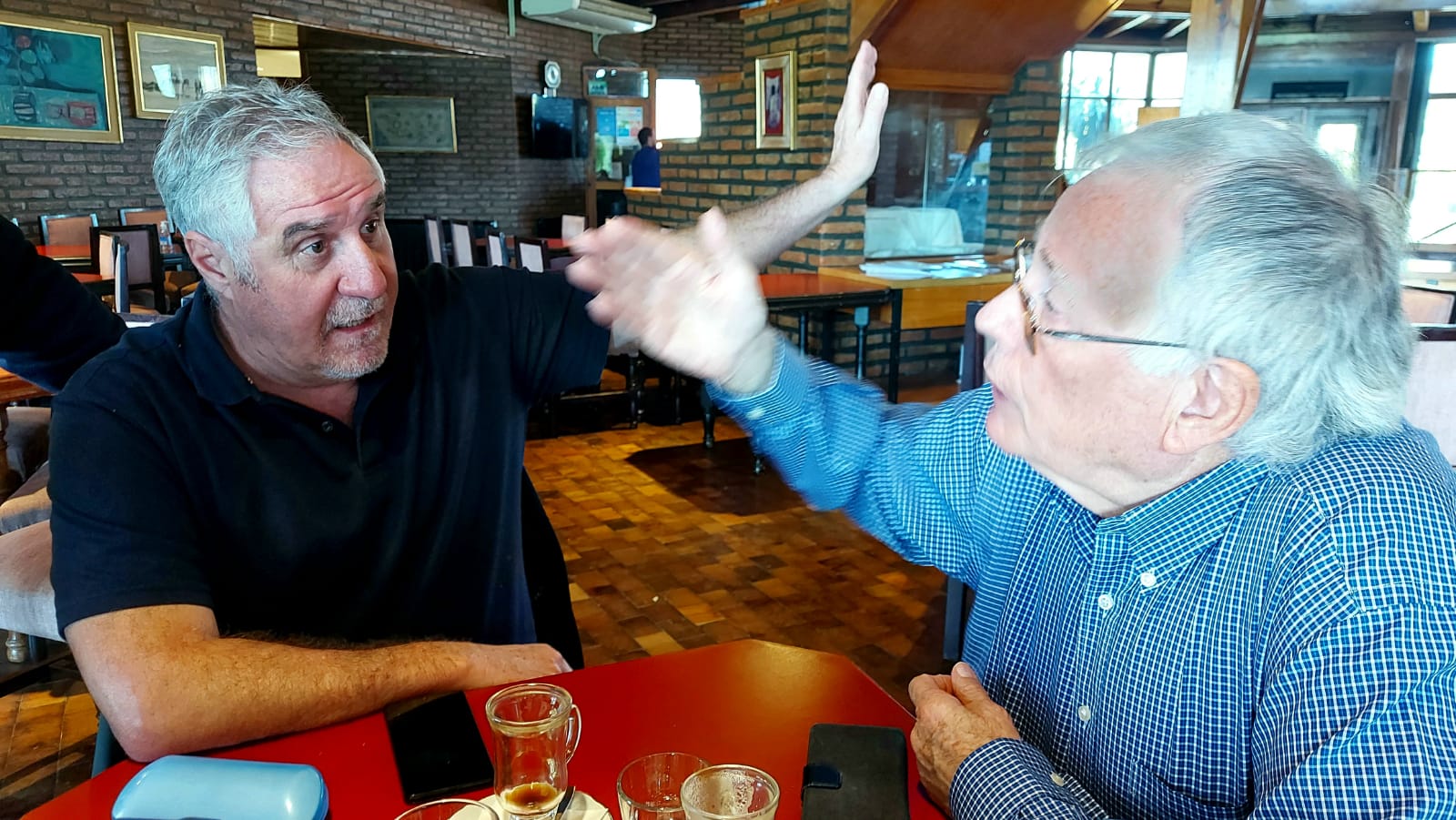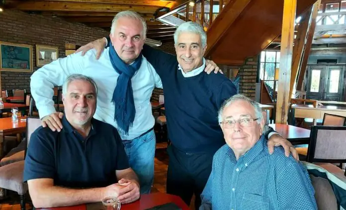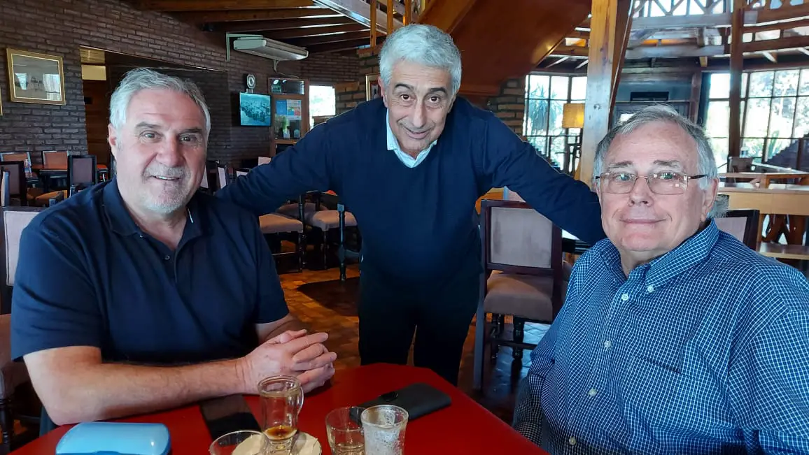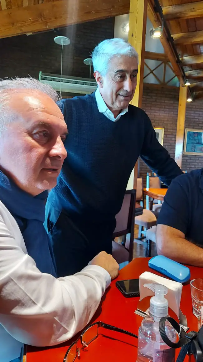 Y acá lo tenemos, en una mesa cafetera del legendario Portal del Lago Hotel, de la querida Familia Baremberg, en un cuarteto de lujo, al Bicho Del Buono… pués que de El se trata.