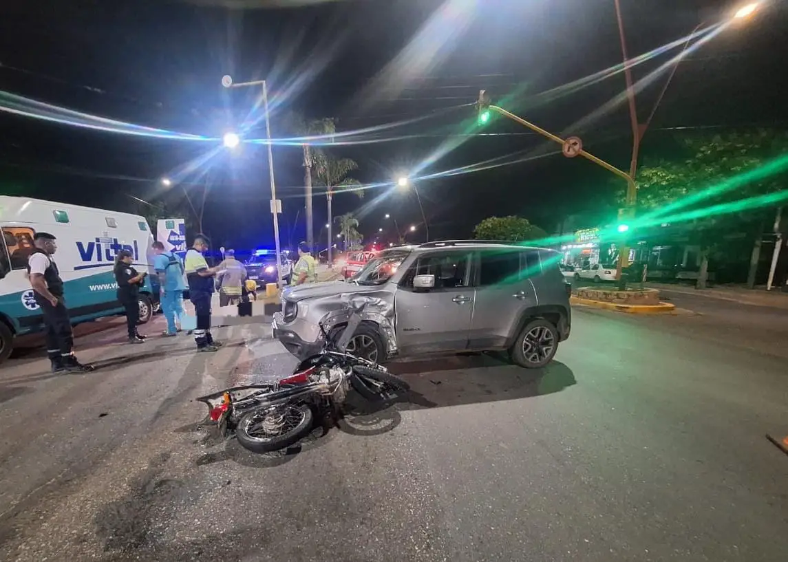 En avenida San Martín y Esparta, un motociclista de 28 años al mando de una Honda Titán, impacto con una Jeep Renegade que conducía un joven de 21 años.