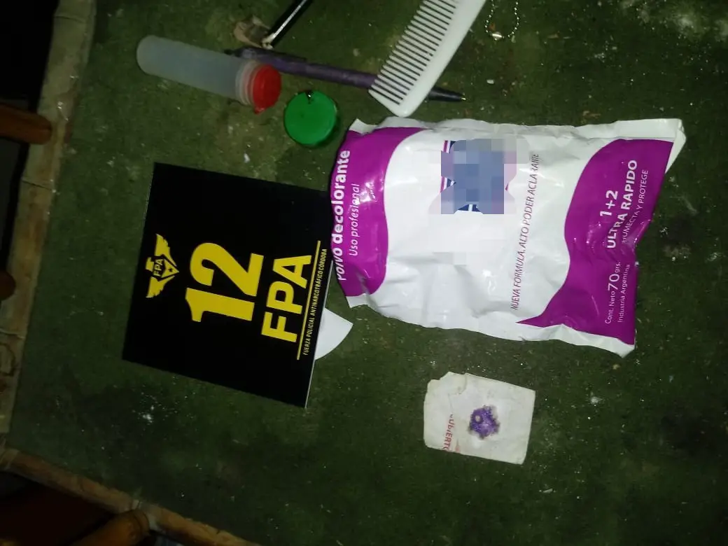 Ttras aprehender al investigado, investigadores de la FPA registraron el inmueble, incautando 64 dosis de cocaína, una cantidad menor de marihuana, 41 mil pesos (aparentemente producto de las “transas” o ventas) y diferentes elementos relacionados al fraccionamiento, como envoltorios caseros vacíos y decolorante para cabellos en polvo (sustancia con la que presuntamente estiraba la droga el sujeto aprehendido).