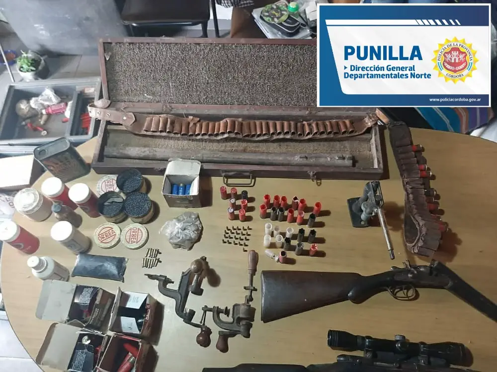 Con la orden judicial, los policías ingresaron a la casa y secuestraron una escopeta de calibre 16, una carabina, cartuchos y municiones.