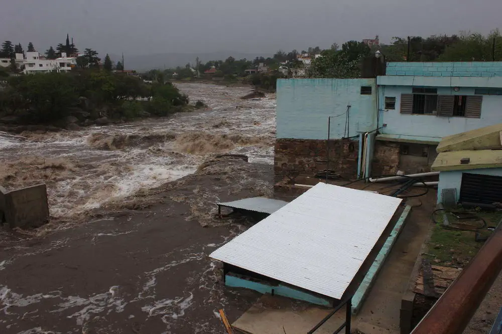 No solo el Río Los Chorrillos creció, el Río Cosquín también incrementó desmesuradamente su nivel.