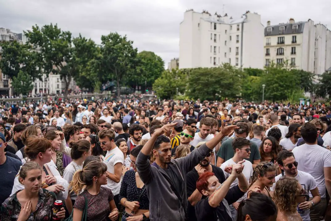 Miles de parisinos participaron de una fiesta con una decena de disc jockeys a orillas del canal de Saint Martin sin respetar la distancia social ni utilizar medidas de protección, lo que hace temer a las autoridades por un rebrote del coronavirus.
