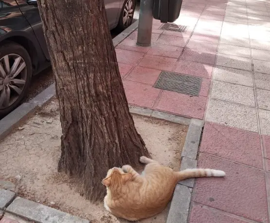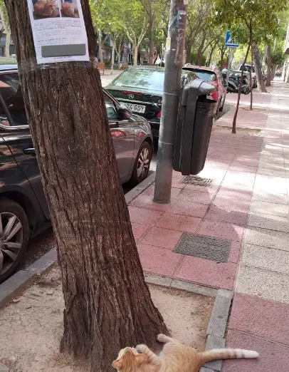 Además, publicó una foto donde se ve al gato tirado en la base del árbol donde sus dueños habían pegado el cartel. “Gato perdido en el Ranero. De nombre Nelson”, decía el cartel.