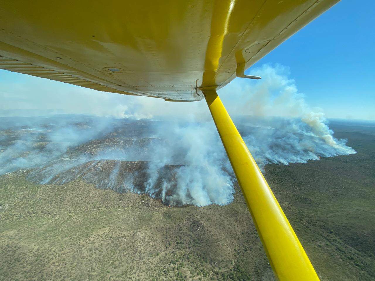 «Está quemando pastizal y mucho monte pesado. Las condiciones meteorológicas tuvimos temperaturas muy altas y bajo porcentaje de humedad», explicó.