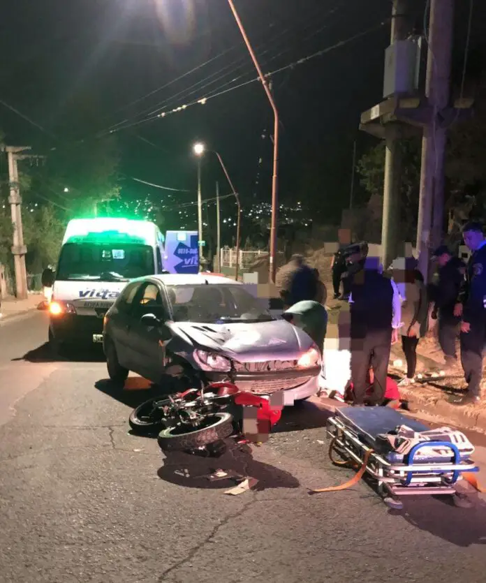 Este miércoles por la noche, alrededor de las 22,15 hs, una moto y un automóvil chocaron en barrio La Quinta de Villa Carlos Paz. El conductor del rodado mejor sufrió un traumatismo grave de cráneo.